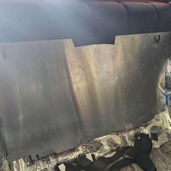 In order to do this we made a custom Aluminium plate that sits behind the top section of the rear seat, completely sealing the boot from the main cabin
