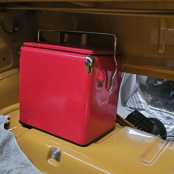 In order to achieve this the original wiring loom was completely abandoned and a brand new custom loom was made and hidden throughout the vehicle in order to get the desired effect. As with any hidden electrical system the biggest object to hide is the battery, which was moved into the boot of this Aussie muscle car. Even here our client wanted to head in a different direction from the traditional false panel, therefore, we hid his Optima dry cell battery in a retro style esky (chiller).