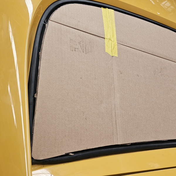 As the vehicle was already painted it was decided to make a glass template and get a custom made rear screen manufactured.