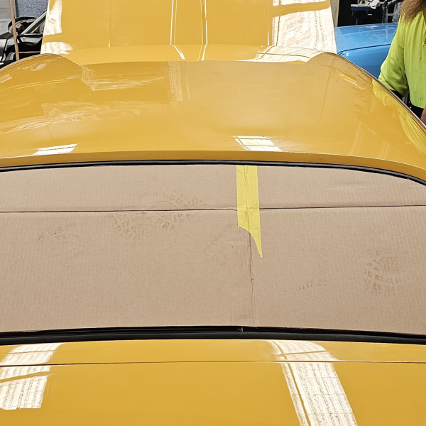 The second issue came when the new rear window wouldn’t fit at all.  Heads were scratched and measurements were taken, this proved that the glass dimensions were correct.  So heads were scratched a little more and then the hole in the vehicle was measured.  This showed a 10mm difference from Left to Right of the vehicle, an error made by the shop which had previously replaced a quarter and the filler panel.