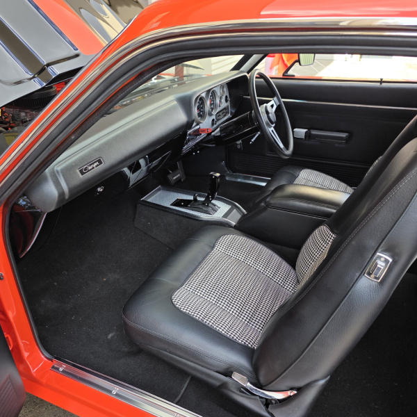 It was never meant to be a true restoration but rather a build to what the owner always wanted the VH Valiant Charger to be like. Every thing from colour, stripes, bodywork, mechanical, suspension, trims, rubbers, windows, interior etc… has been specifically built to order.